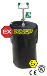 Custom cylindrical eyewash station heated jacket and top cover for HAZARDOUS AREA LOCATIONS