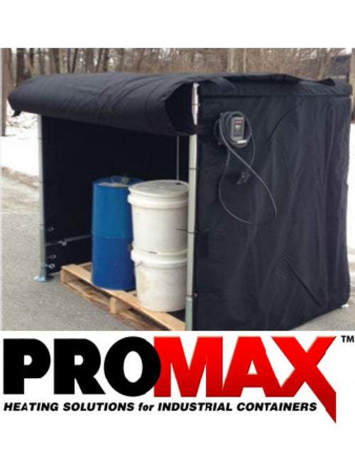 The ProMAX HOTBOX-PRO is an Insulated Electric Bulk Material Portable Oven engineered for heating coconut oil, wax, honey, corn syrup, chocolate and other food processing ingredients contained in pails, drums and bulk containers. ProMAX is the leader in food process heating of drums, pails, totes, tanks and other food containers prior to mixing, pumping and processing. Liquefy viscous materials with ProMAX bulk material heaters. ProMAX HotBox is 80 cu ft (52" x 44" x 56" Tall), 120V Standard (or 240 Volt Optional), 1800 Watt, and features a patented heat spreading technology and structured box design creating an approx. 80 cu.ft. controlled environment that rapidly heats temperature sensitive materials including bagged asphalt, paint, caulking, epoxy, resins, food products, grease, oils, lubricants and palletized drums & buckets. The HOTBOX-PRO includes Adjustable Thermostatic Controller and Adjustable Straps. Ideal for Warehouses, Construction and Job Sites. (* Results are contingent upon boundary conditions).