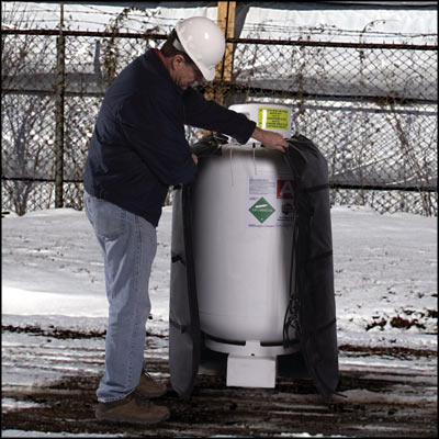 Powerblanket® GCW420 - 420 LB Propane / Gas Cylinder Warming insulated heated blanket, 120 Volt, 960Watt, 8.00 Amp. Safely heat propane & other gases to optimal temperatures. Increase PSI & Gas mileage. UL/CSA Compliant. Fits tank dimensions 30" Diameter x 52" Height.