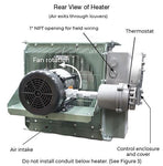 The FX6 offers a larger junction box for easier installation, additional limit controls, and a heavy-duty core. Two levels of pressure and thermal protection provided standard on all units for best-in-class safety and reliability. The heater core assembly is contained in a sturdy, epoxy-coated 12-gauge steel cabinet, which also carries the motor and fan assembly. Adjustable louvers allow directional control of the airflow. A narrow gap, two-piece fan guard is provided to shield all moving parts. All fasteners are zinc plated for corrosion protection.