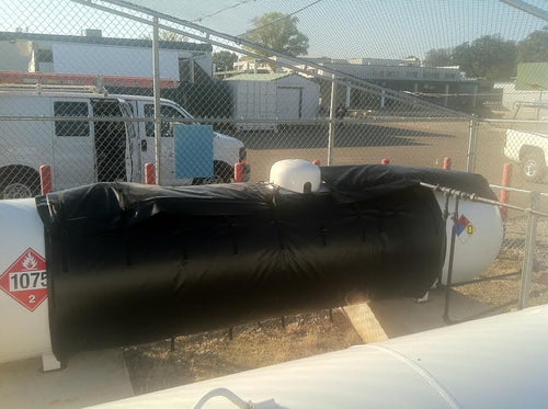 1000 Gallon Propane Cylinder Warmer consists of a (4) blanket system. (2) HEATED BLANKETS & (2) INSULATED PADS. Each heated blanket is 1440W, 120V, 12A. Optional insulated end caps are available. Call or email for pricing.
